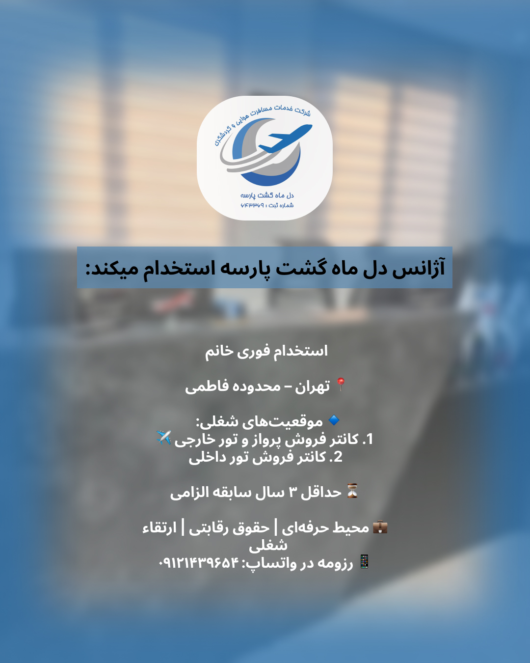اگه عاشق سفر، ارتباط با مشتری و دنیای گردشگری هستی، جای تو توی تیم حرفهای لیانا پرواز خالیه! 🌍